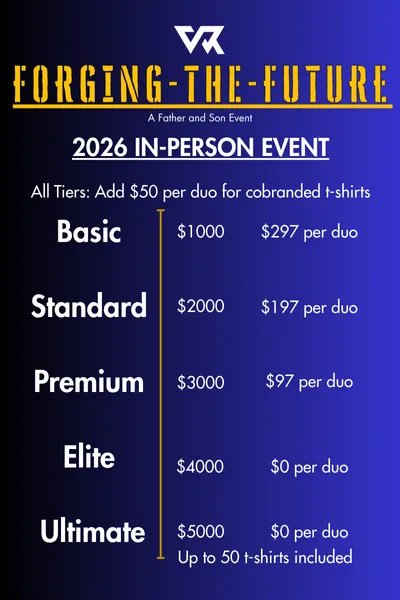 Come experience an incredible day alongside your son (ages 8-16) to experience fellowship, competition, education, and bonding throughout a full day of masculine activities that empower your son and provides an important standard for your relationship! Our aim is to elevate their manhood, empower their future, and show them what it’s like to grow shoulder to shoulder together as men!